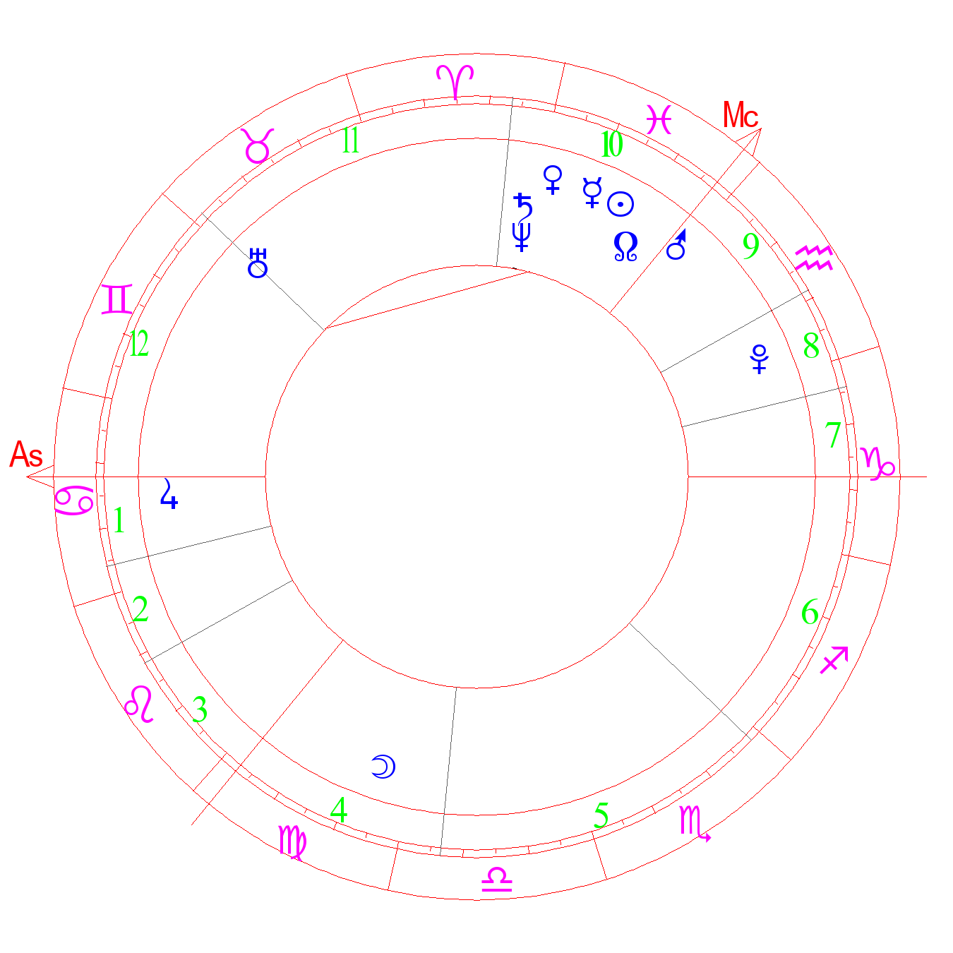 Determination, firmness, rationalism. With water cosmogram there is intuition, occult, magical, and telepathic abilities. Journeys. Ill-wishers (ASA). Capacity for surgery and medicine, cunning, energy, danger, long- distance trips. The degree of Jupiter (Kefer)