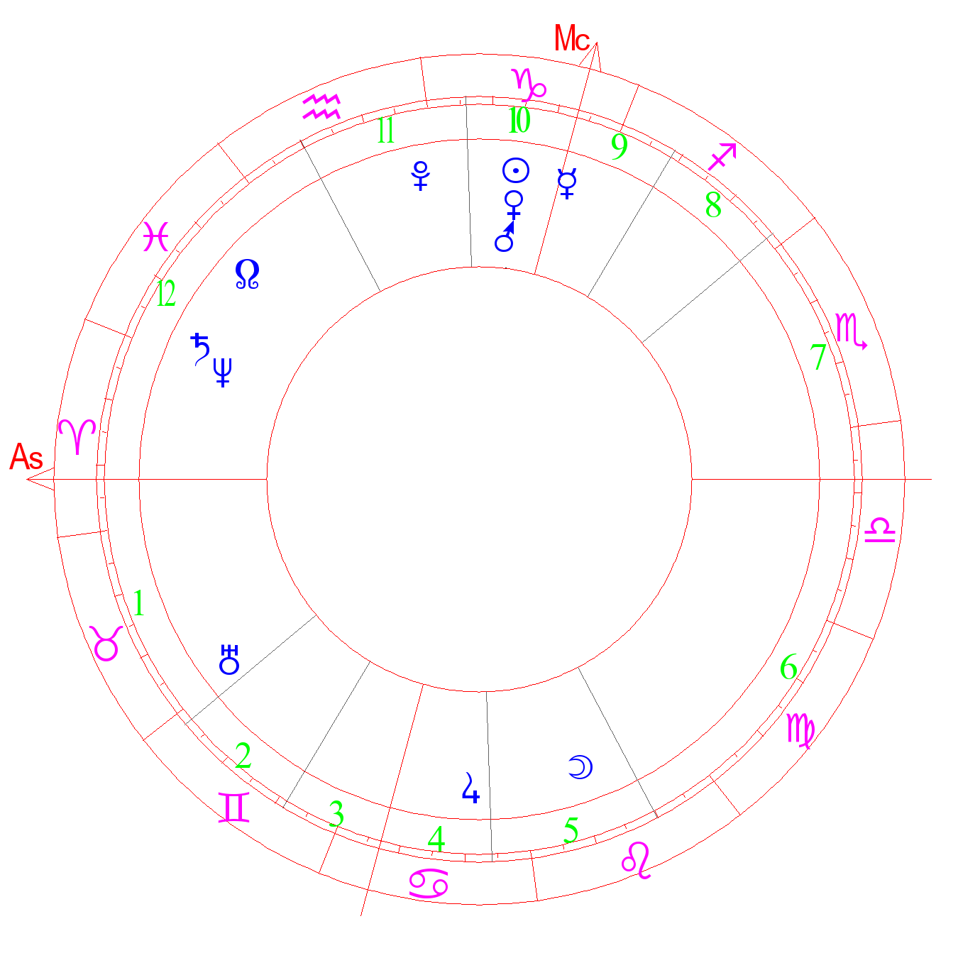 Patience, great duality, cunning, guile, diplomatic niceties. The degree of favors or chits. Ability to get comfortable and enjoy good attitude of others (ASA). Sadness, joy of work, seriousness. When damaged by Mars-there is paralysis. If the ascendant is in inconstant signs - inclination to suicide. In good aspect to Venus and Neptune - musical abilities. The degree of Saturn (Kefer). Degree of suicide (deVore)