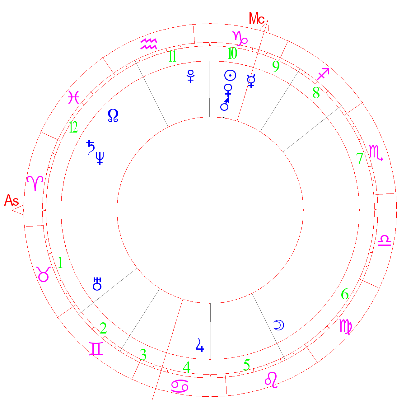 The fall of Jupiter. Degree of fertility. The degree of immigration. Passion, enterprise, drive, initiative, mobility of nature, love of sports, hunting, physical strength. A very good degree, luck is held in hands. But there is no support from the social authorities, a person is forced to make his own way, gain authority at the expense of Jovian qualities. [-] risk of disaster (ASA). The one, conscious of his own strength, bold undertakings, ethos of sport, overcomes great difficulties. The degree of Jupiter (Kefer). Degree of duty (deVore)