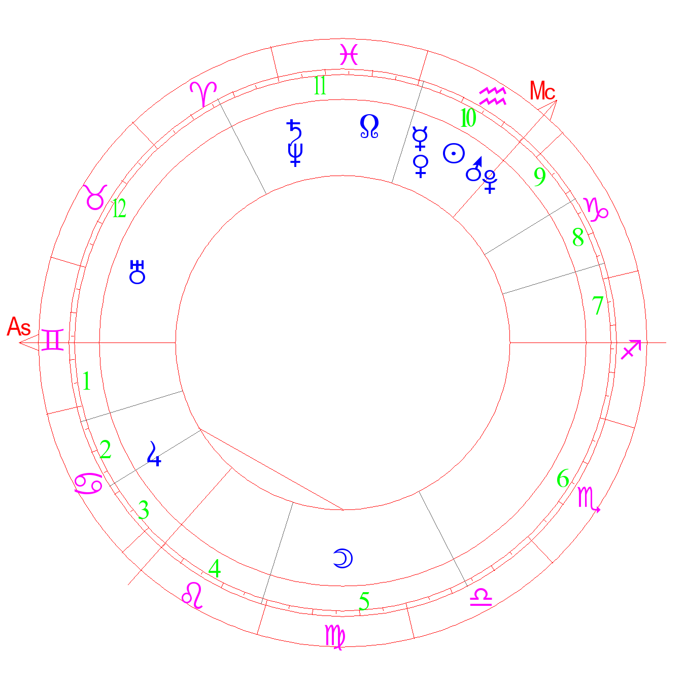 Degree of infertility, celibacy, suicide. Vices, diseases, deformities, sickliness, weakness, homosexualism (ASA). Diseases, medicine, inheritance, Bright disease. The degree of Mars (Kefer)