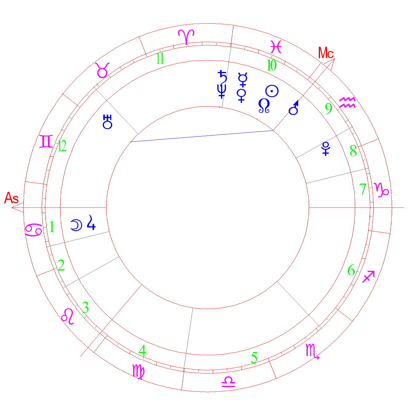 Degree of clairvoyance, fertility. Degree of celibacy. Degree of the rugged traveler. Life is full of worries. Emigration or exile. Death in the foreign land. Aggressive and ugly nature. [-] meanness, betrayal. [+] diplomacy, tendency to compromise (ASA). A passionate adherer to religion, emigration, travel, self-denial, the possibility of criminal offenses, a tendency to murder, rheumatism. The degree of Mars (Kefer)